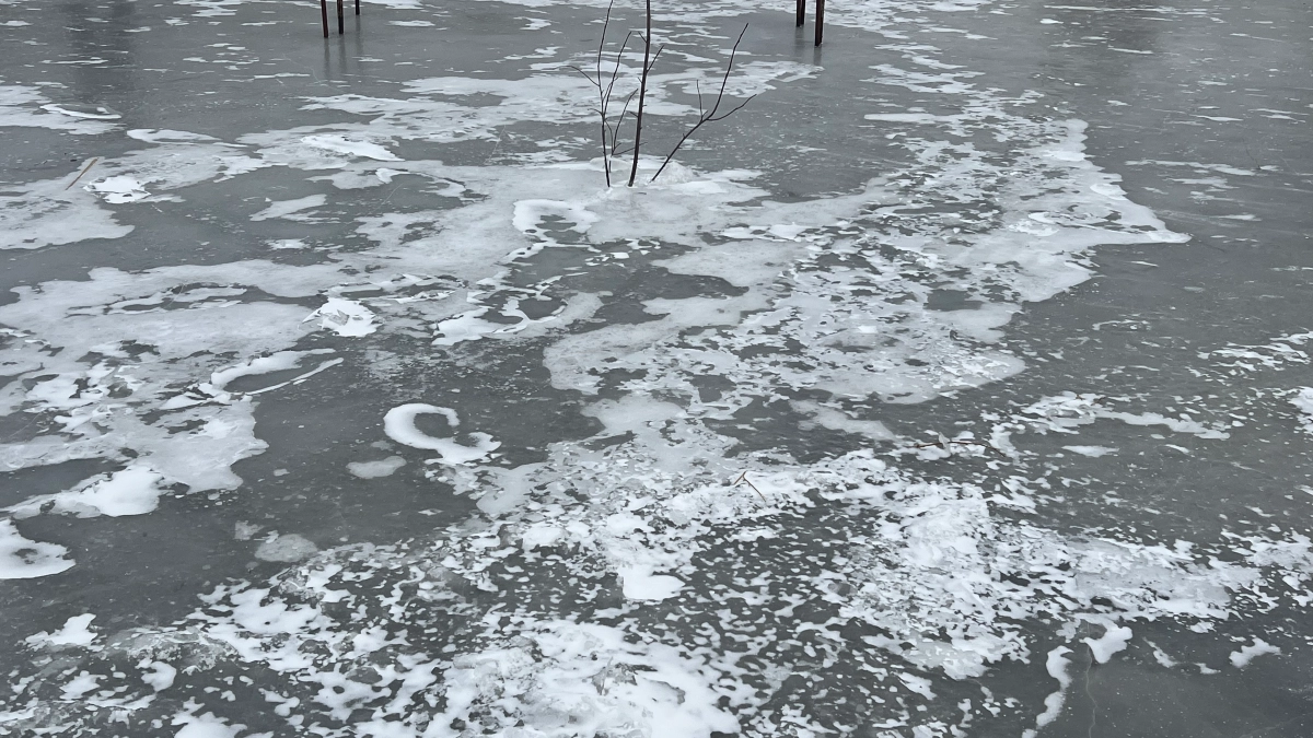 Холодная погода заморозила вновь подступающую воду, превратив огород жильцов в каток. Пруд, который по умолчанию ниже двора на полтора метра (и это не считая насыпи, которую сделали жильцы), сегодня расположен вровень с огородом. Причина - высоко поднявшийся уровень воды. Немая угроза словно только и ждёт потепления, чтобы завершить начатые разрушения.